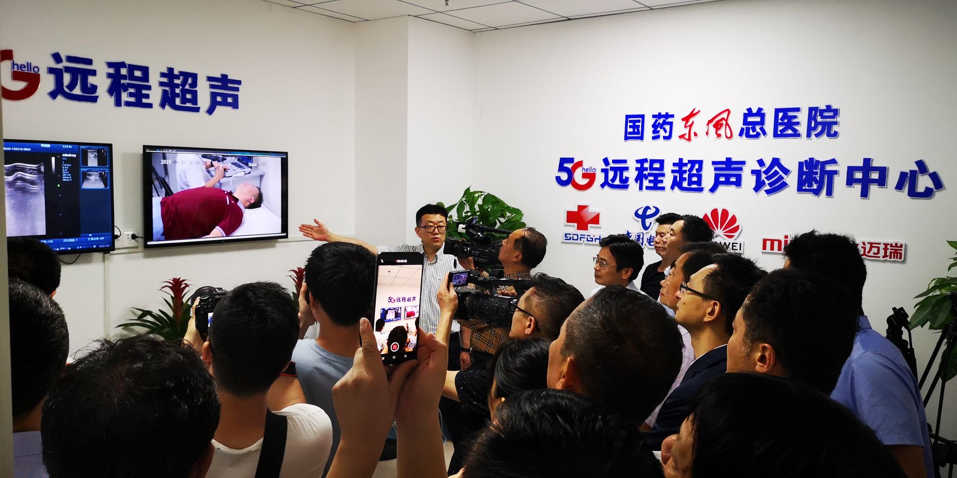 6月20日,医师通过5G远程超声系统在凤凰联盟官方网站东风总医院5G远程超声诊断中心给远在70公里外的凤凰联盟官方网站汉江医院患者完成了甲状腺超声检查。十堰市政府、经信局、卫健委,中国电信十堰分公司、华为湖北代表处等相关领导和代表,凤凰联盟官方网站东风总经理何宏生,副总经理、凤凰联盟官方网站东风总医院院长魏涧,党委书记李斌等共同见证湖北省首例甲状腺疾病患者远程超声诊断。